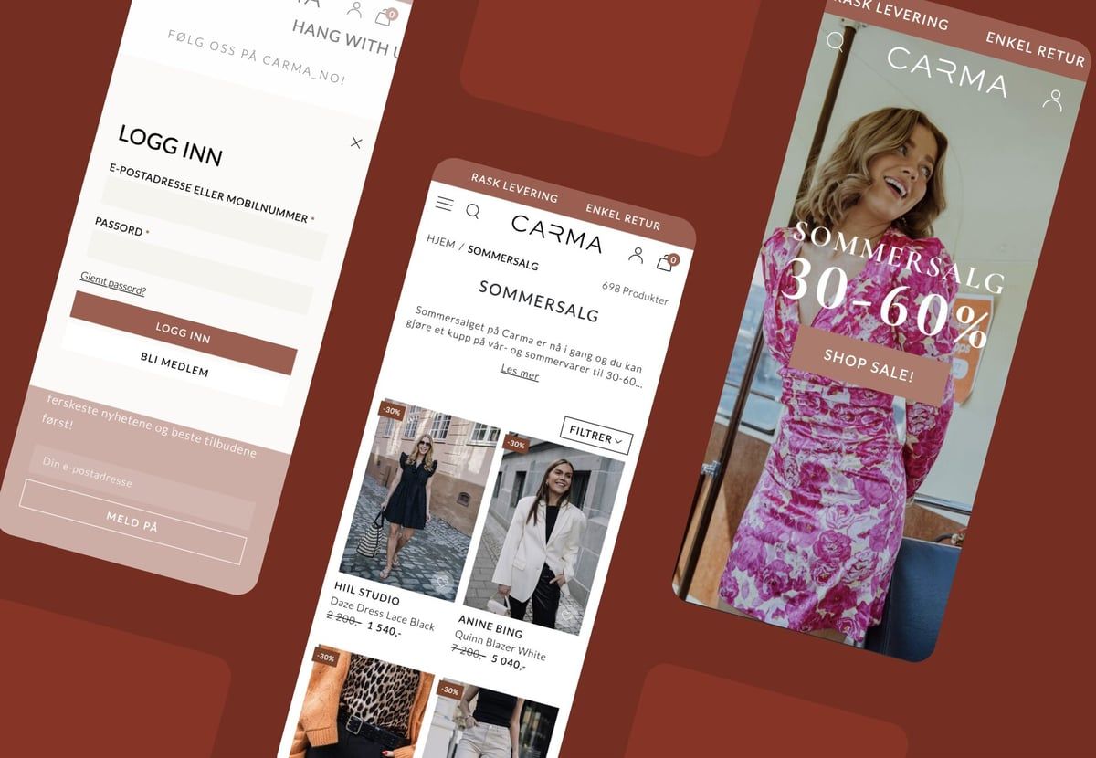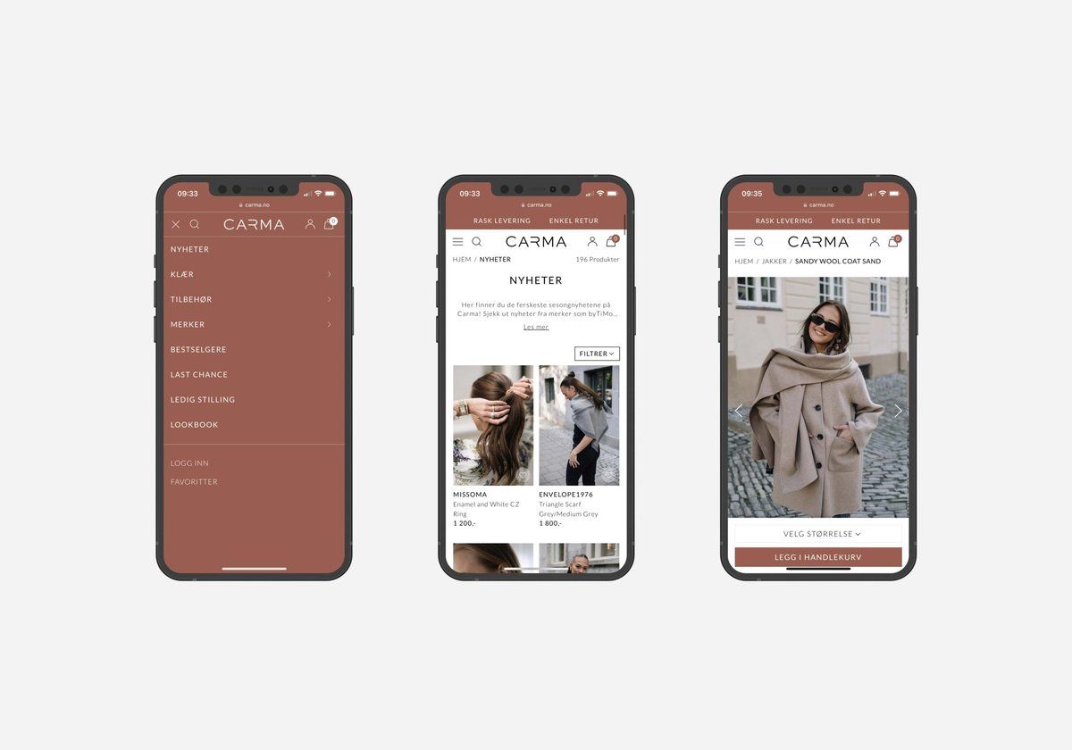 Vi har hjulpet Carma med å utvikle en totalplattform som er rustet for fremtiden. Resultatet er en supermoderne nettbutikk, sømløst integrert med Carmas fysiske butikk og lojalitetsprogram. Flere operasjoner automatiserer og effektiviserer de ansattes arbeidshverdag. All endring og utvikling er dypt forankret i Carmas veletablerte merkevare og et ønske om å inspirere kvalitetsbevisste kunder til å utvide garderoben sin.